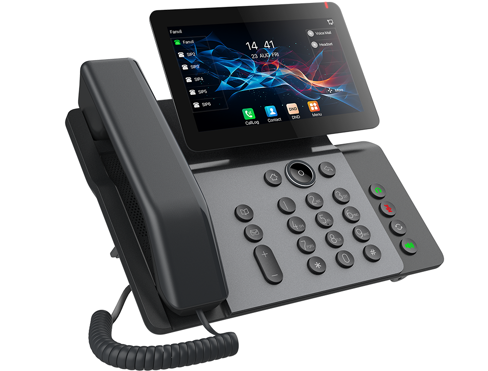The Fanvil V66 Prime is a premium business IP phone designed for modern workplaces that demand performance, flexibility, and a superior user experience. Featuring a large 7-inch color touchscreen and an intuitive interface, it delivers seamless navigation, enhanced productivity, and easy access to advanced communication features.