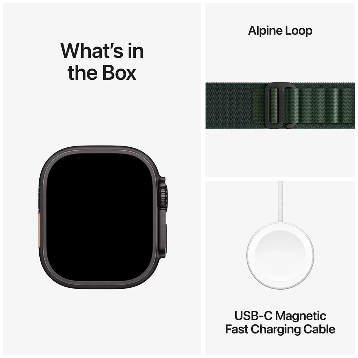 | Accessories Included | Apple Watch Ultra 2, Band, Apple Watch Magnetic Fast Charger to USB-C Cable (1 metre) |