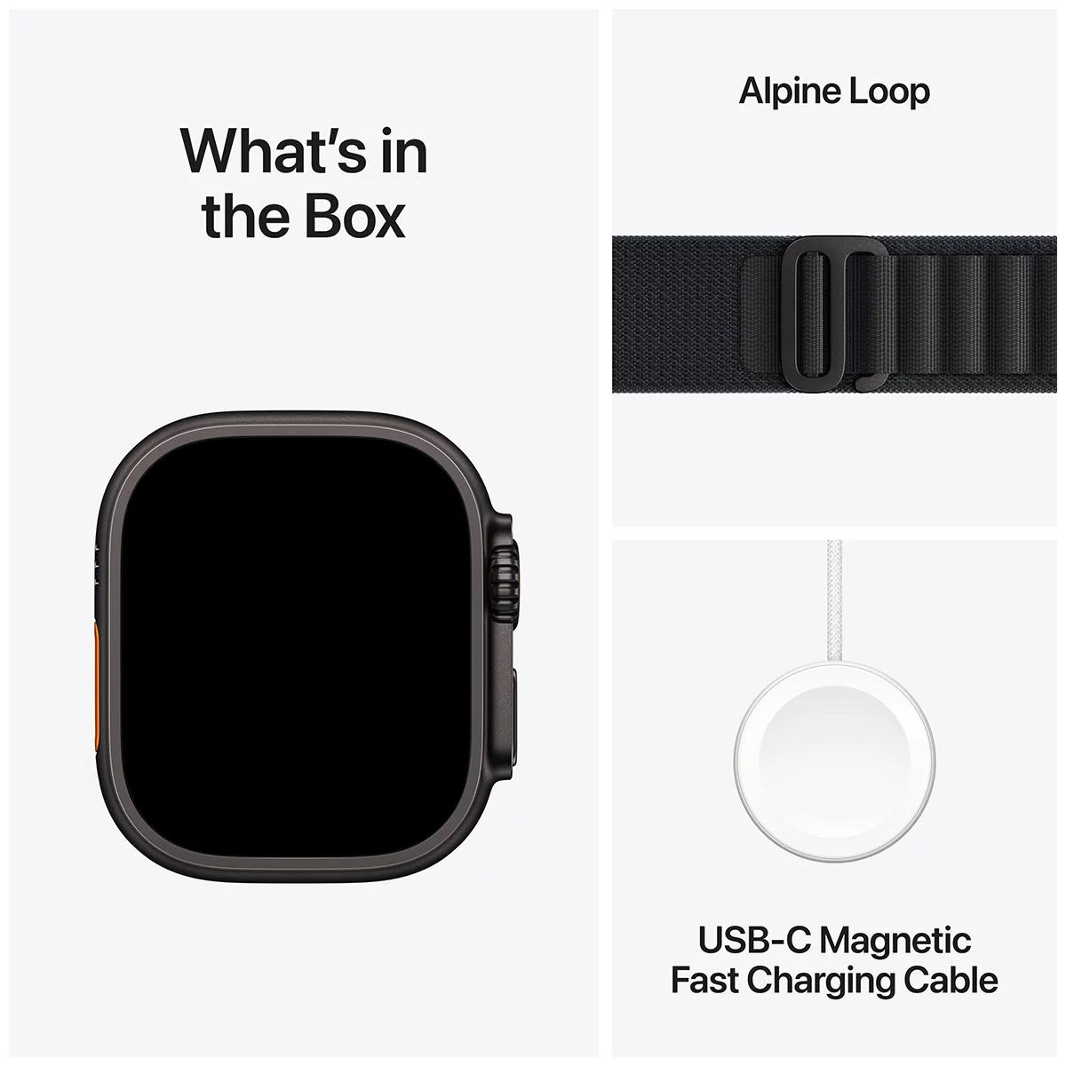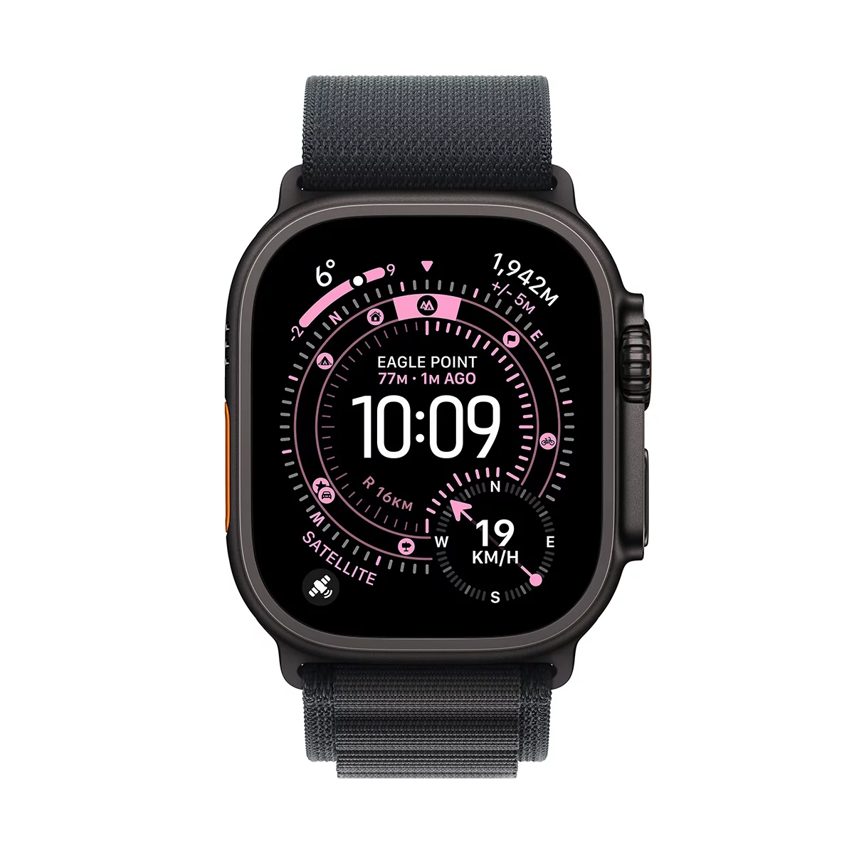 Crafted with a sleek black titanium case and paired with a Black Alpine Loop – Large, this model provides a secure and comfortable fit for larger wrists. Built to withstand extreme conditions, it is water-resistant up to 100 metres, making it perfect for swimming, diving and high-speed water sports. With GPS + Cellular connectivity, you can take calls, stream music and stay connected without your iPhone nearby.