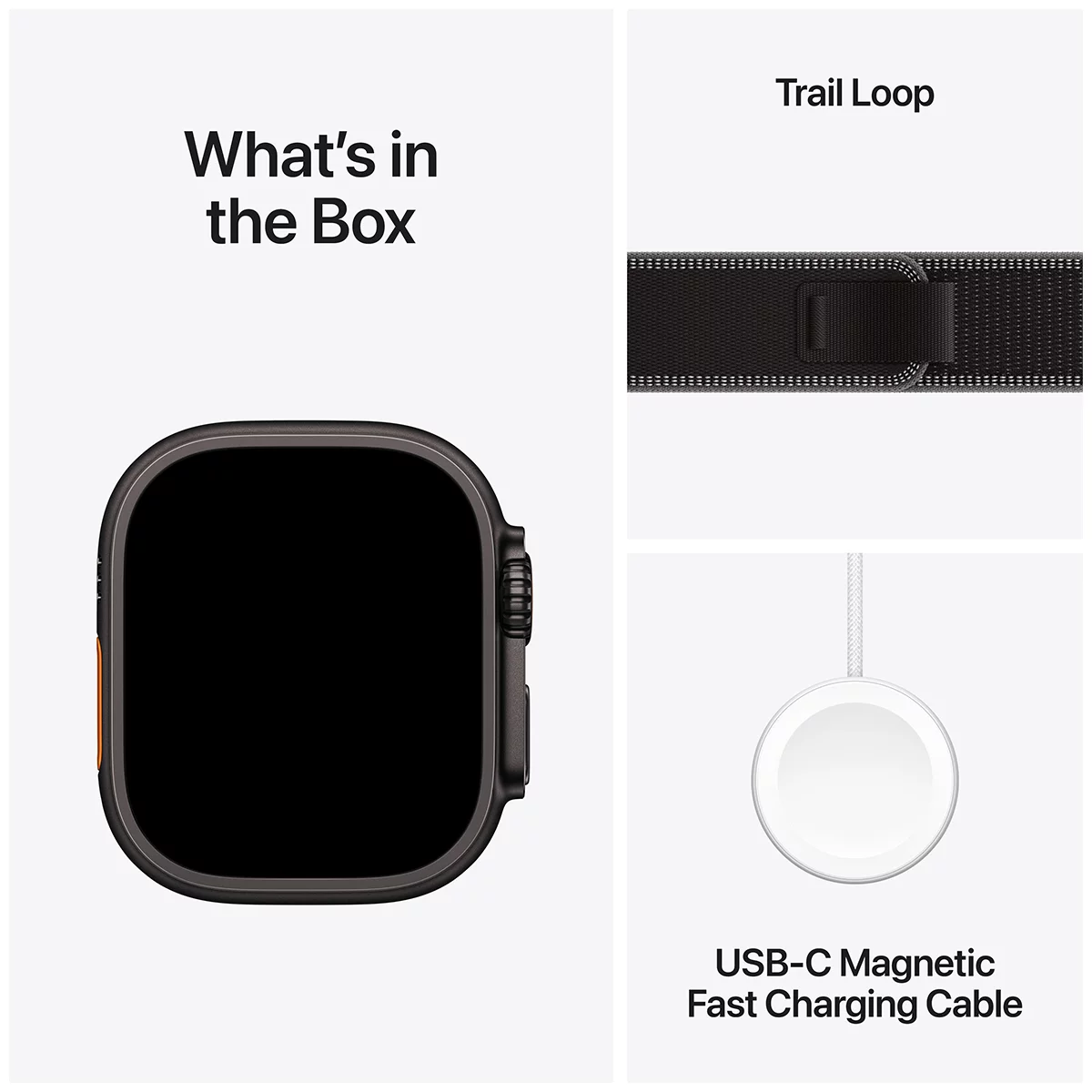 Crafted with a sleek black titanium case and paired with a Black/Charcoal Trail Loop – S/M, this watch provides a lightweight and breathable fit ideal for active lifestyles. Built to handle demanding environments, it is water-resistant up to 100 metres, making it perfect for swimming, diving and water sports. With GPS + Cellular connectivity, you can take calls, stream music and stay connected without your iPhone nearby.