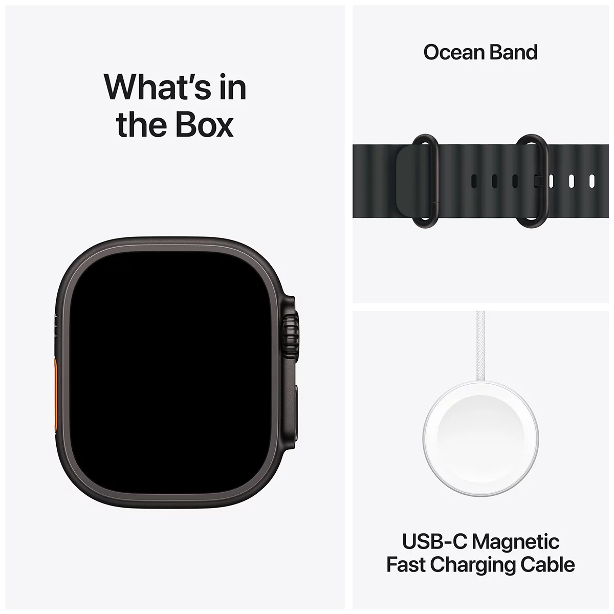 - 49mm Black Titanium Case with Black Ocean Band for a rugged premium finish