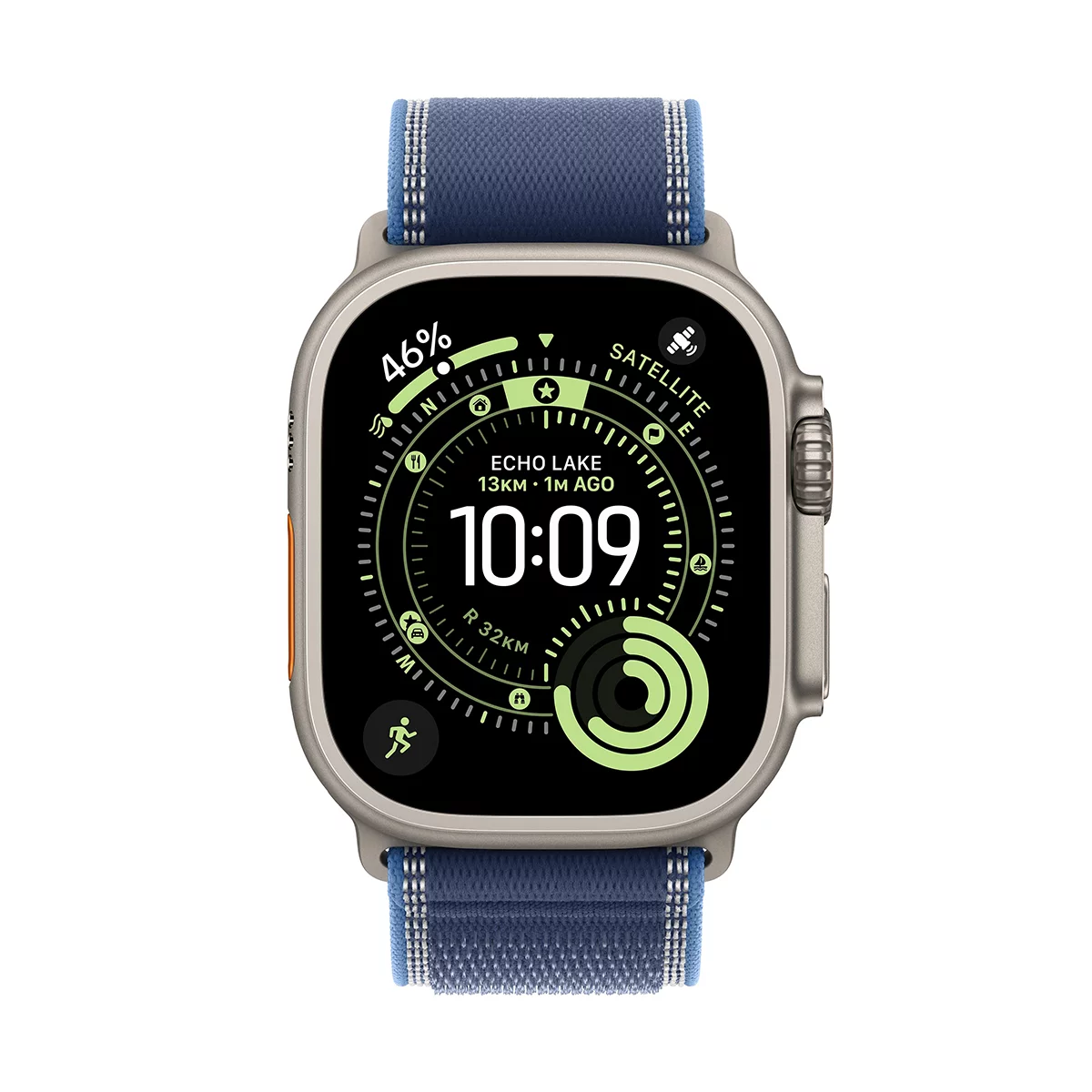 Crafted with a natural titanium case and paired with a Blue/Bright Blue Trail Loop – S/M, this model offers a lightweight and comfortable fit for active lifestyles. With water resistance up to 100 metres and advanced connectivity features, you can take calls, stream music and stay connected without your iPhone nearby.