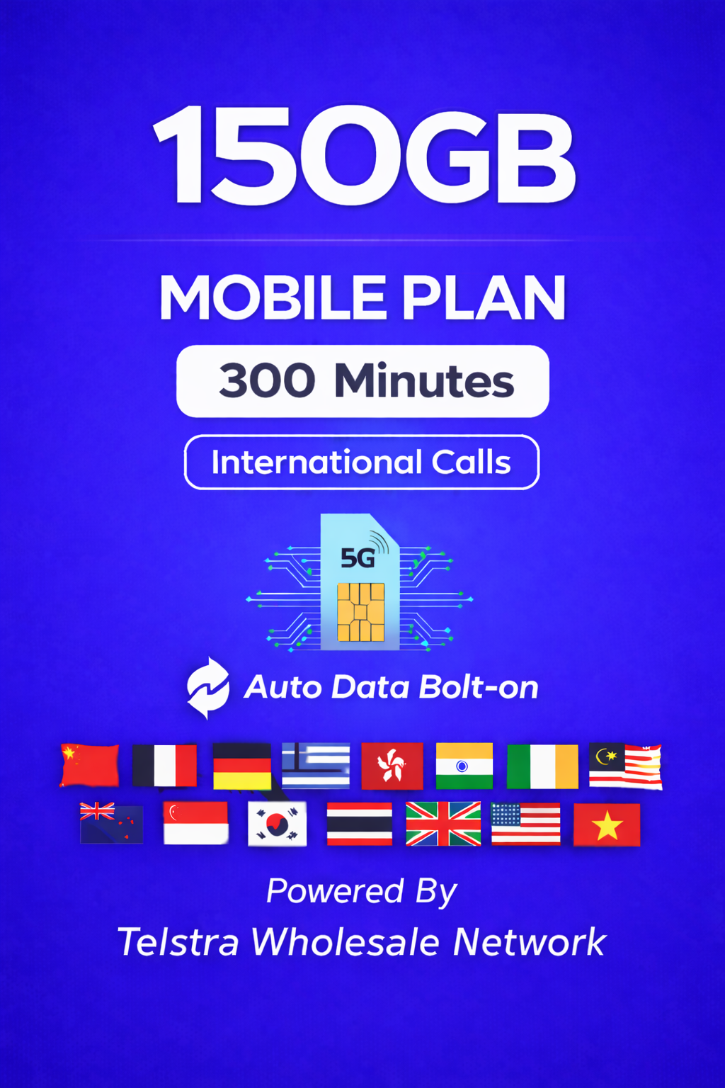 Important: 5G or 4G available in selected areas; speeds & coverage vary by location and device. International calling inclusions apply only to selected countries and are subject to fair-use policy. Services supplied via the Telstra Wholesale Network.